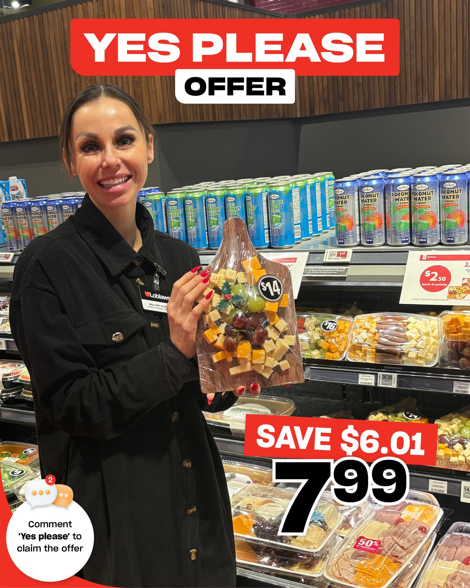 🧀🍇 YES PLEASE OFFER · SAVE $6.01 · CHEESE AND GRAPE TRAY $7.99 🍇🧀