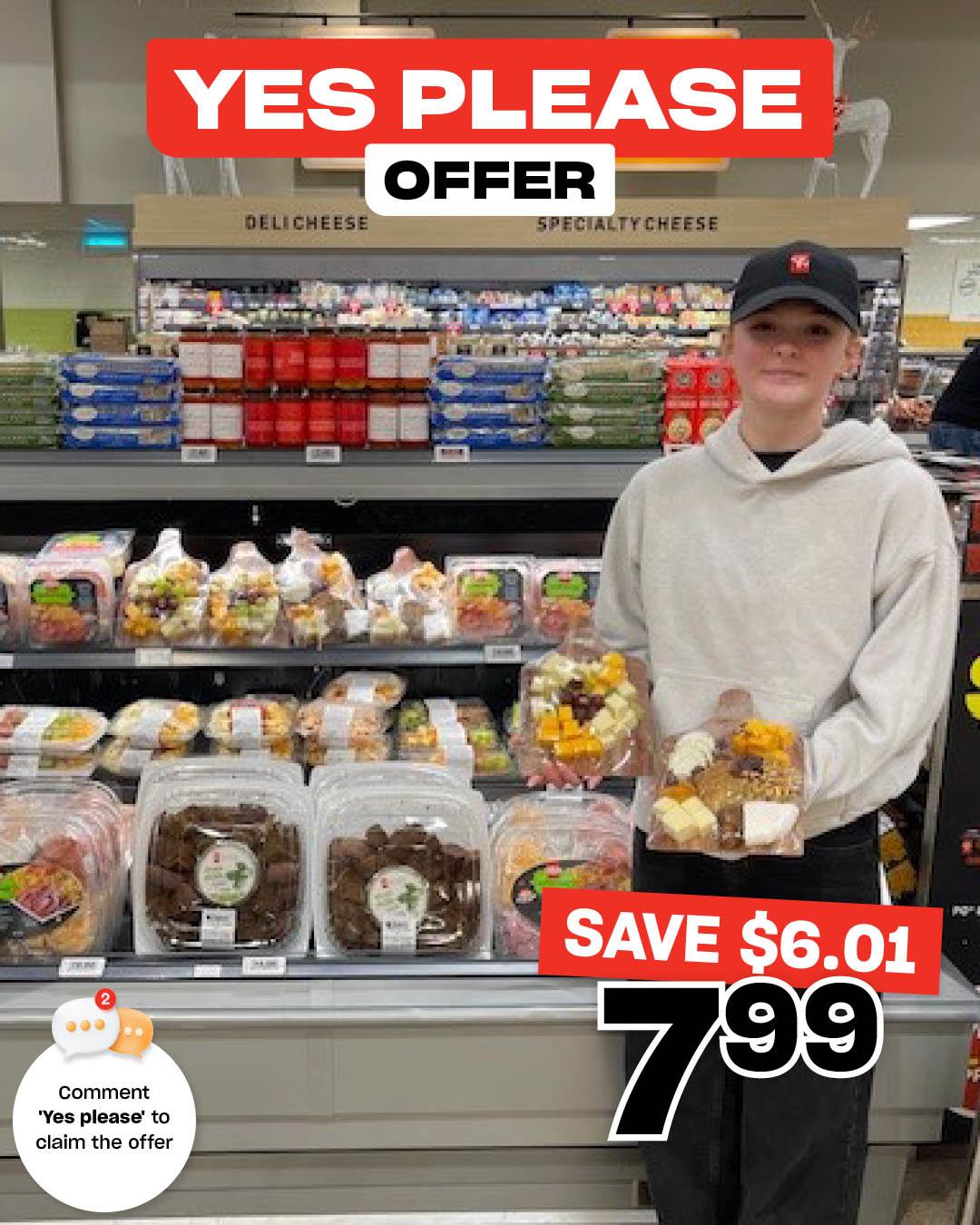 🧀🍇 YES PLEASE OFFER · SAVE $6.01 · Cheese and Grape Tray $7.99 🍇🧀