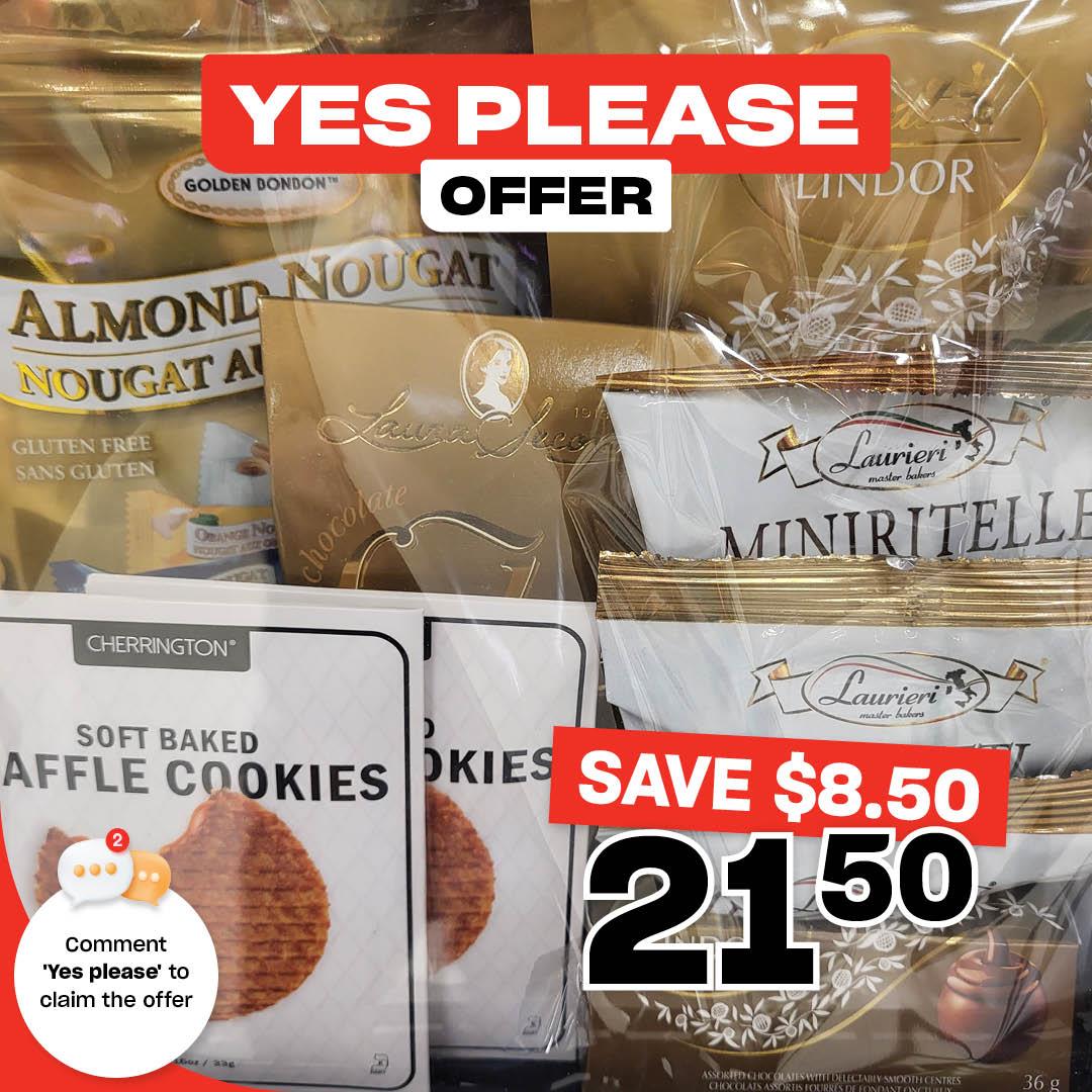 🍫🎁 YES PLEASE OFFER · SAVE $8.50 · Chocolate Gift Pack $21.50 🎁🍫