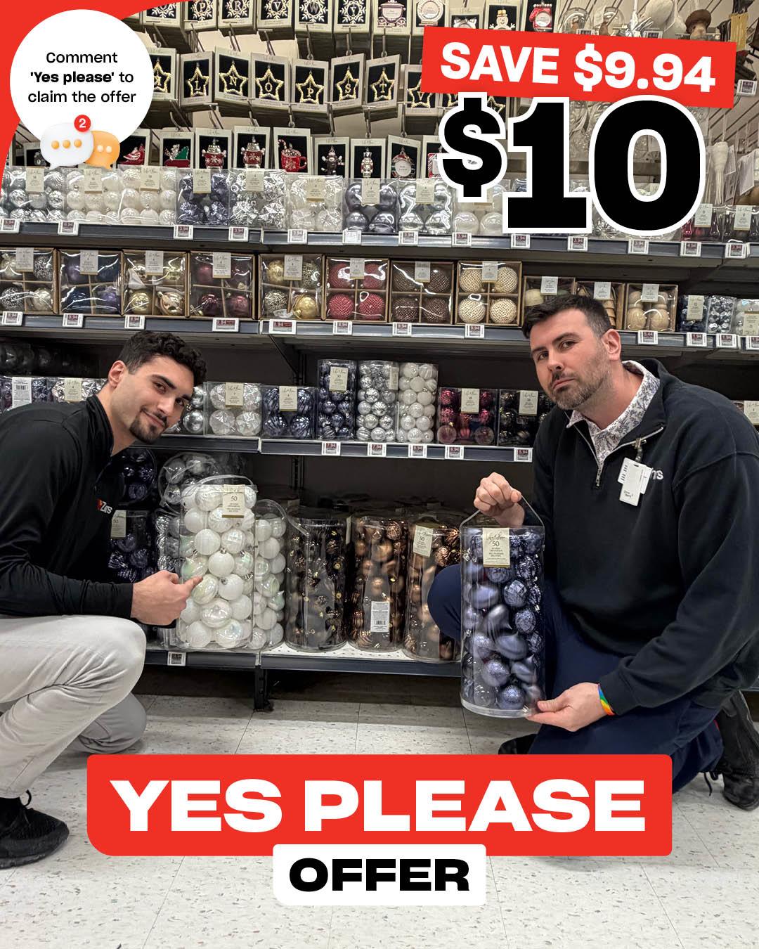 🎁🎄 YES PLEASE OFFER · SAVE $9.94 · LIFE AT HOME 50 PACK ORNAMENTS $10 🎄🎁