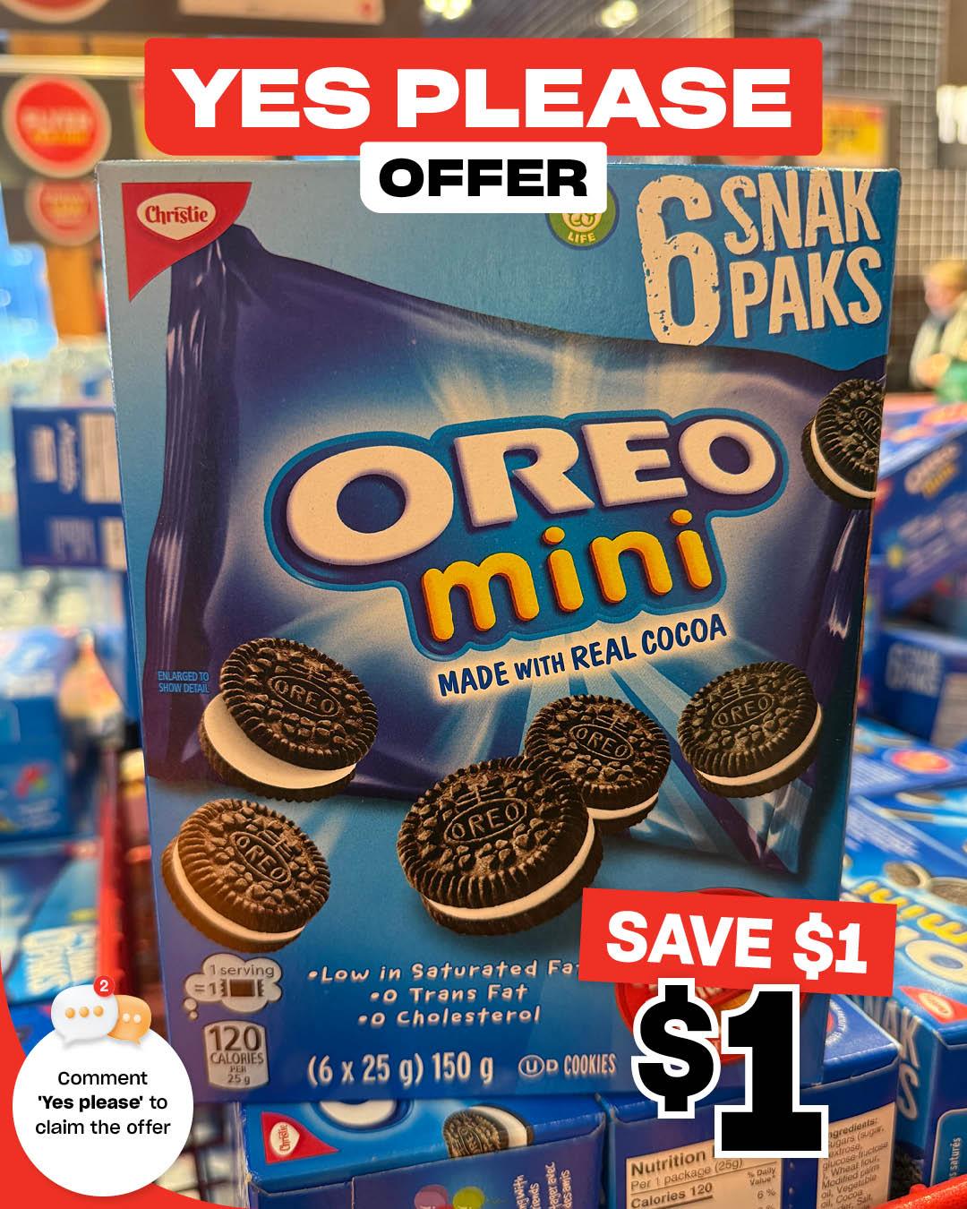🍪🎉 YES PLEASE OFFER · SAVE $1 · OREO MINI $1 🎉🍪