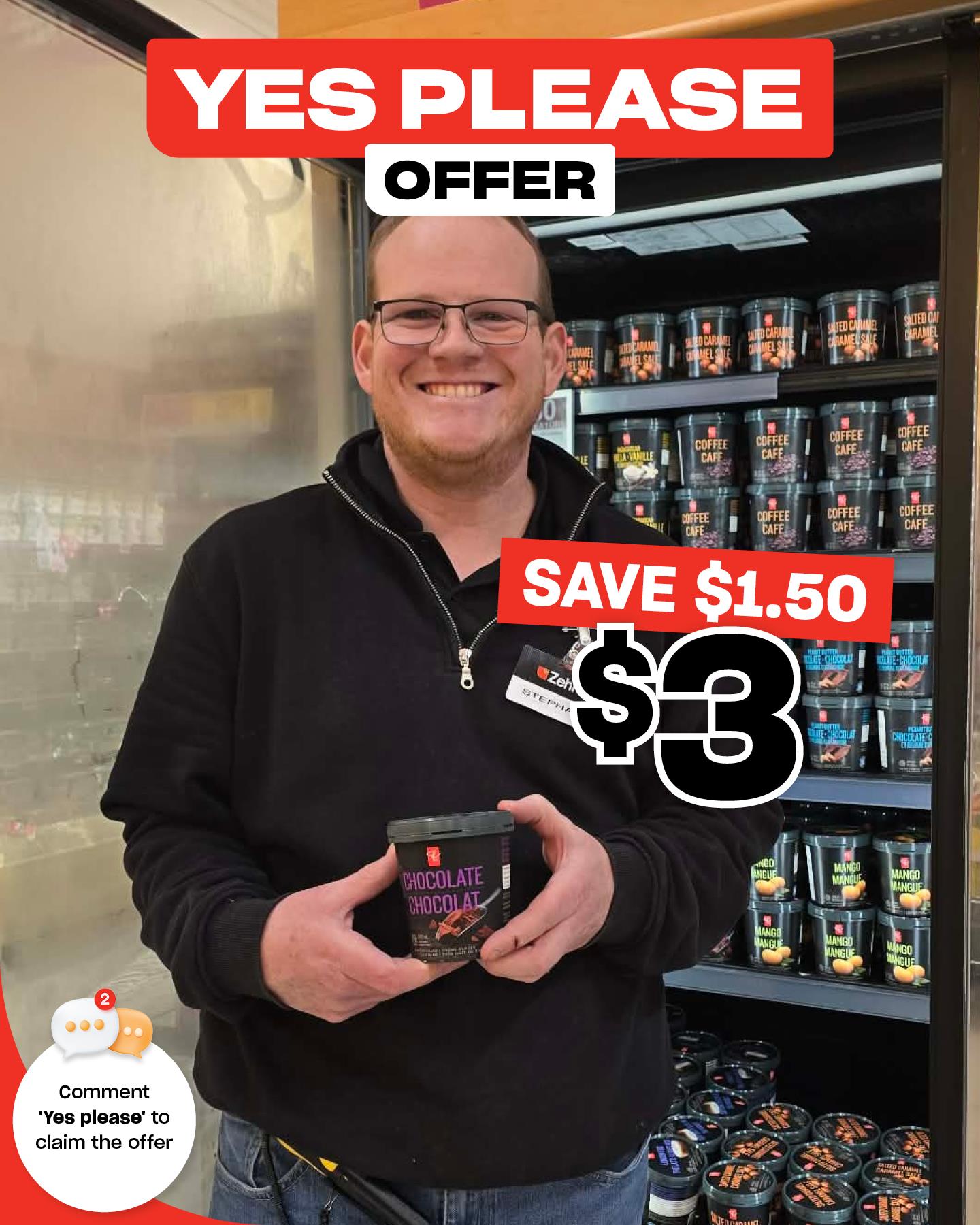 🍨❄️ YES PLEASE OFFER · SAVE $1.50 · PC BLACK LABEL ICE CREAM $3 ❄️🍨
