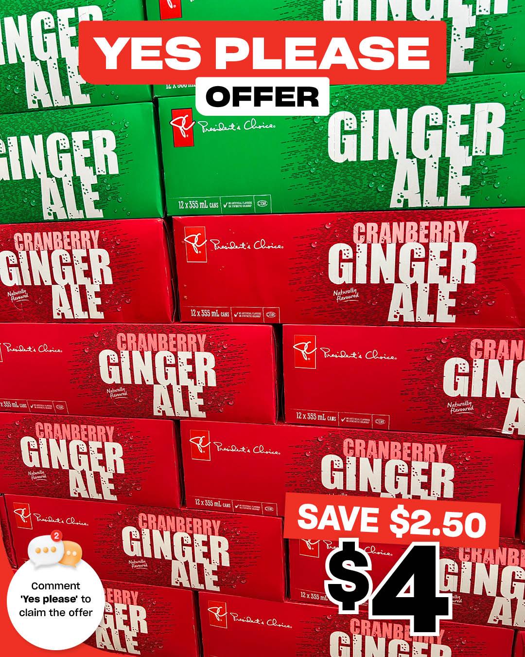 🥤❄️ YES PLEASE OFFER · SAVE $2.50 · PC Gingerale(s) $4 ❄️🥤