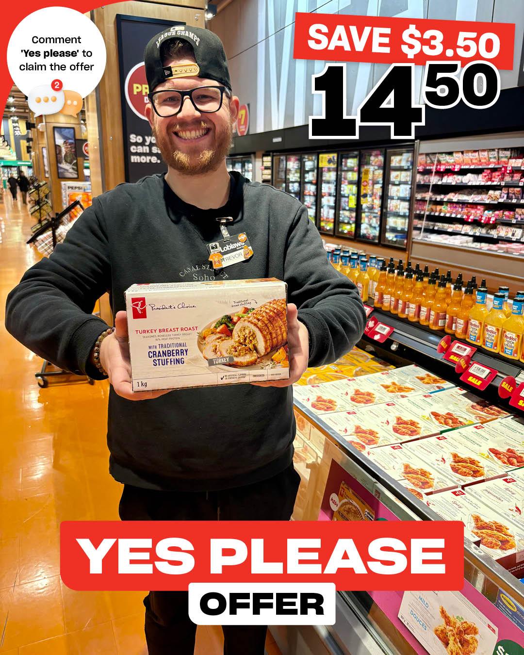 🦃🔥 YES PLEASE OFFER · SAVE $3.50 · PC STUFFED TURKEY BREAST ROAST $14.50 🔥🦃