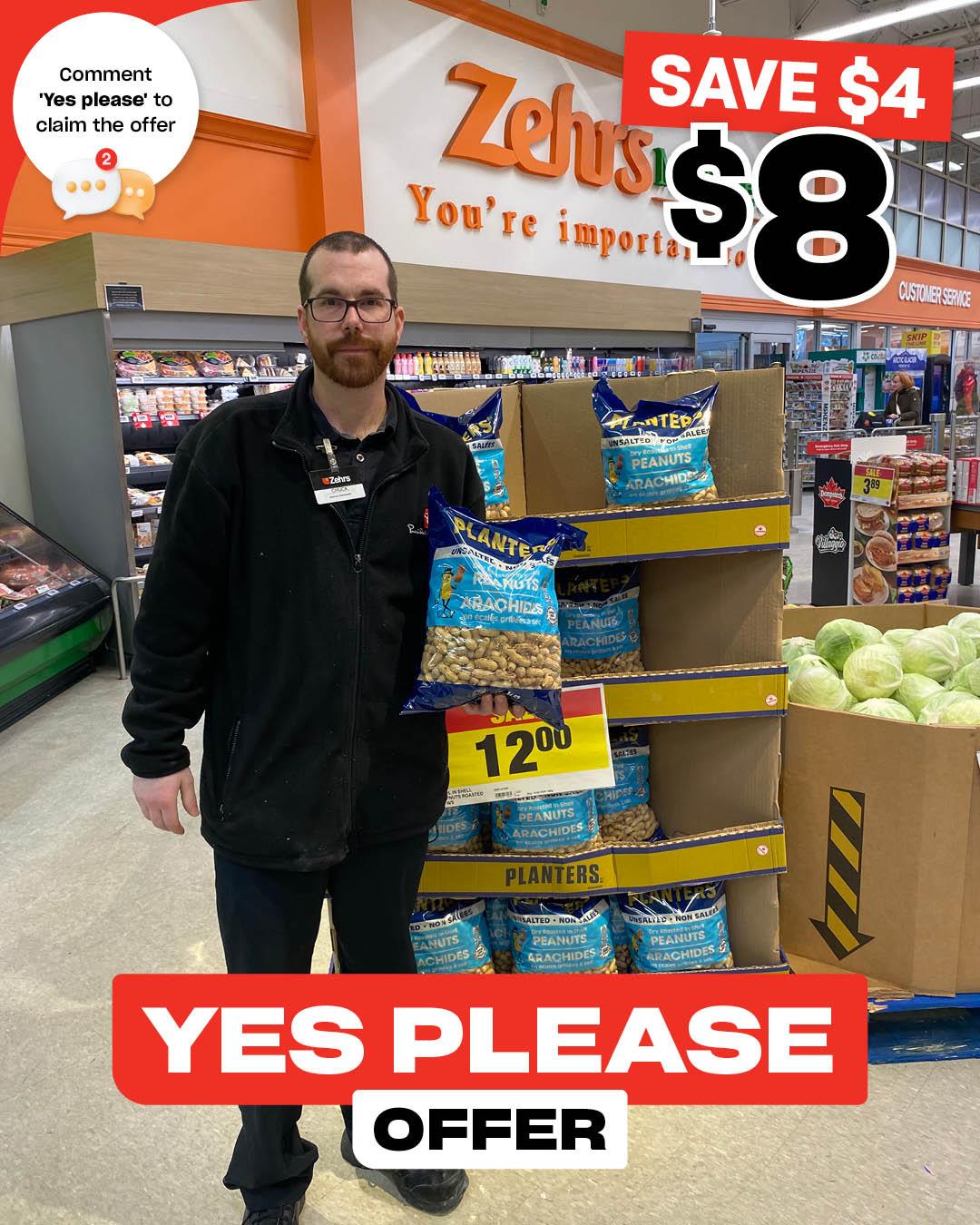 🥜🔥 YES PLEASE OFFER · SAVE $4 · Planters Peanuts $8 🔥🥜