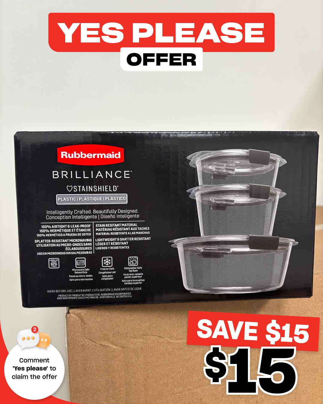 🛍️🥗 YES PLEASE OFFER · SAVE $15 · Rubbermaid Brilliance $15 🥗🛍️