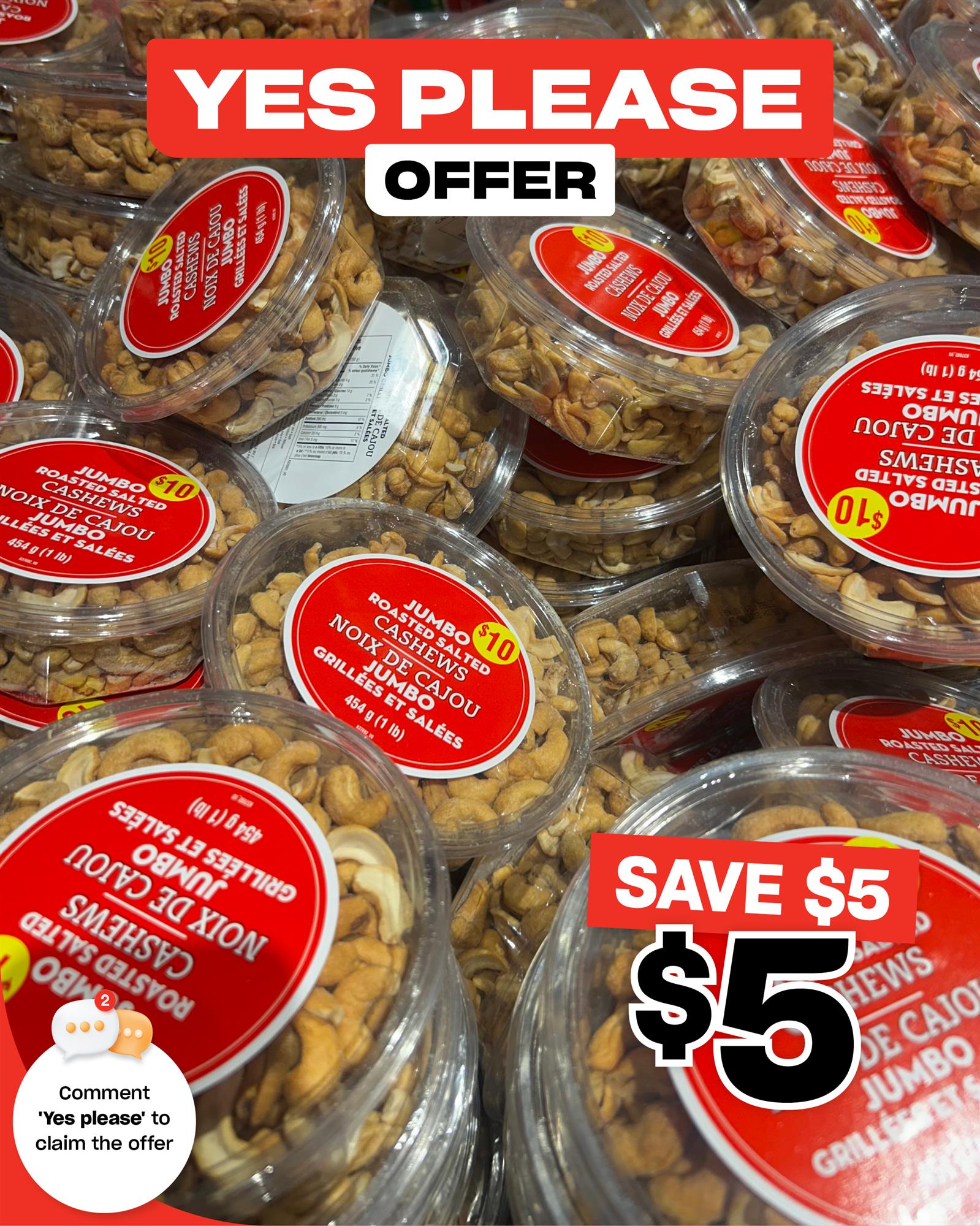 🥜💰 YES PLEASE OFFER · SAVE $5 · SALTED CASHEWS $5 💰🥜