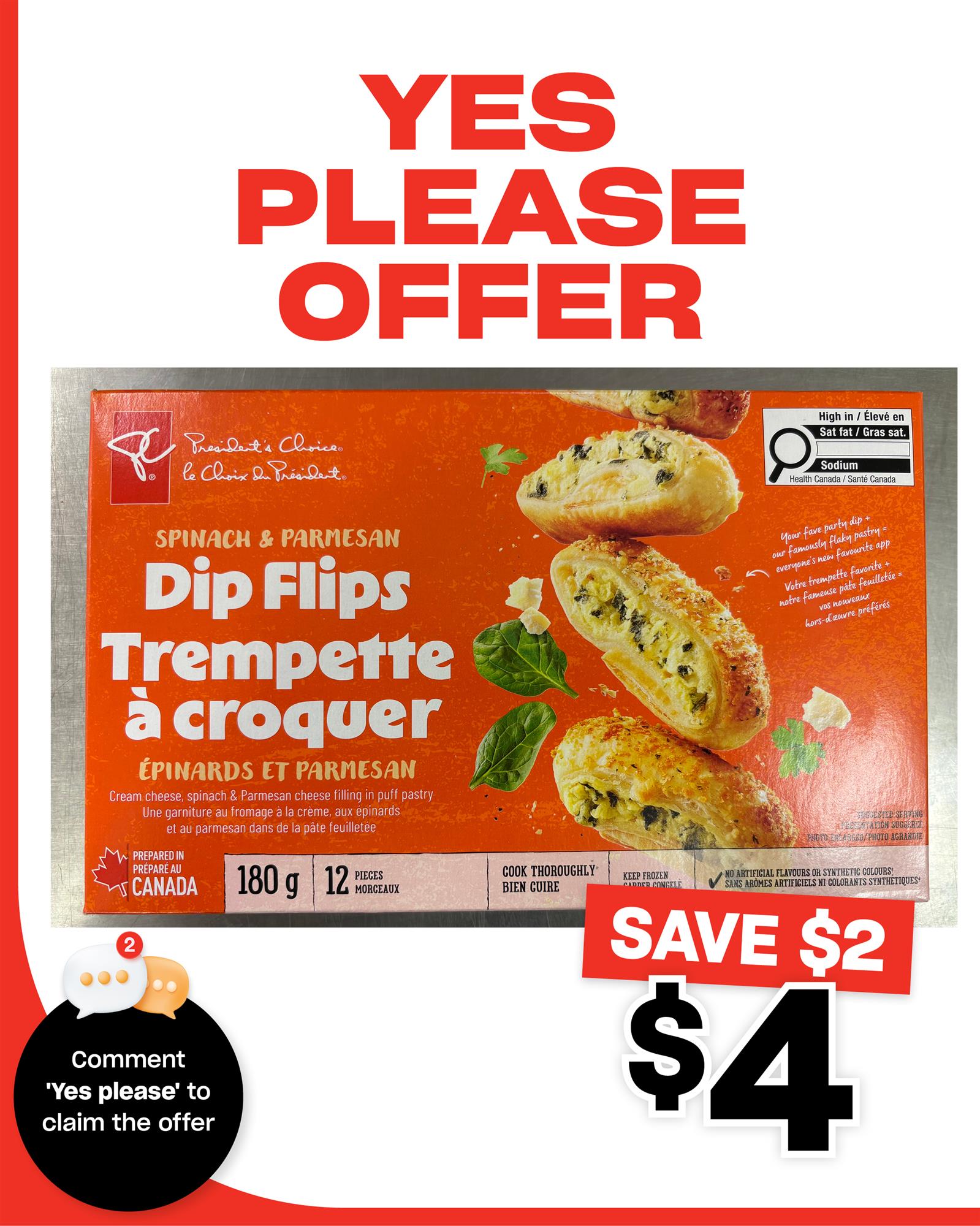 🧀🌿 YES PLEASE OFFER · SAVE $2 · SPINACH AND PARM DIPPERS $4 🌿🧀